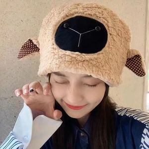2025冬卡通毛绒帽子可爱小狗套头帽子搞怪保暖骑车系带显脸小护耳