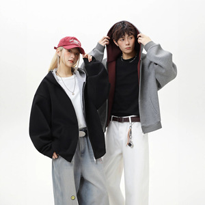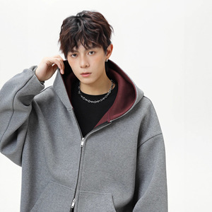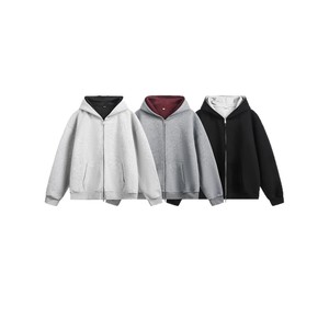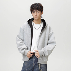380g重磅撞色内里连帽卫衣男秋季款宽松休闲开衫夹克廓形潮牌外套