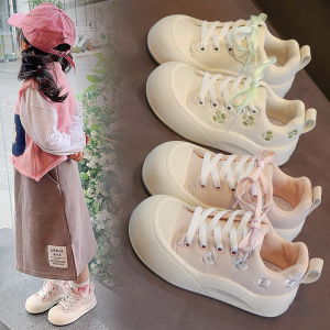 女童板鞋低帮2025新款春秋儿童鞋子魔术贴小白鞋女孩运动鞋休闲鞋