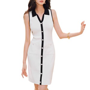 2025年新款欧美亚马逊跨境外贸女装v领外翻单排扣休闲针织连衣裙