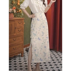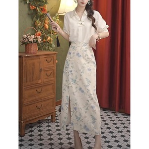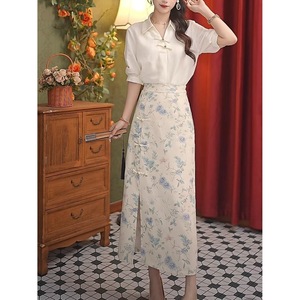 夏季新款减龄小众复古法式时尚显瘦衬衫高腰显瘦半身裙两件套套装