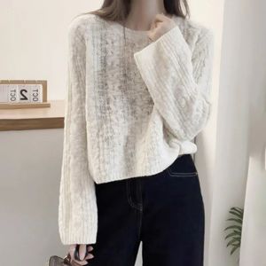休闲百搭宽松长袖针织衫薄款女秋新款慵懒风宽松短款软糯圆领毛衣