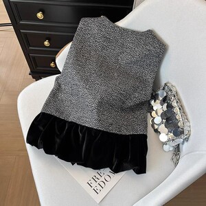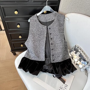 2025新中式国风改良丝绒拼接马甲女式早春小香风圆领无袖坎肩外套