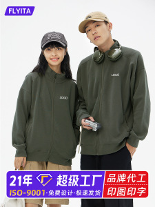 350g米妮棉立领拉链卫衣定制logo长袖秋冬加绒潮牌休闲工作服外套