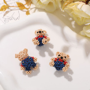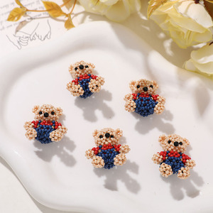 趣味卡通可爱玻璃米珠编织小熊diy发饰头饰手机壳挂件配件材料