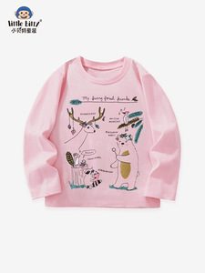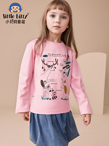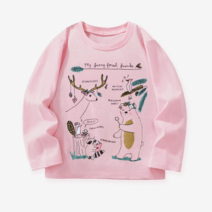 欧美25年秋季女童长袖T恤卡通动物圆领印花女童上衣跨境货源服装