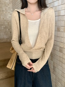 好物2025秋季韩版气质撞色polo领设计感6羊毛百搭针织衫长袖上衣