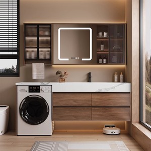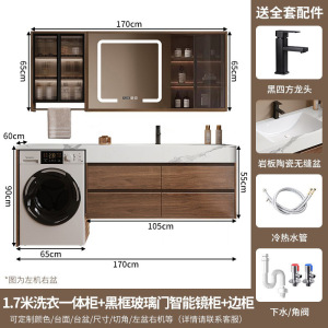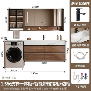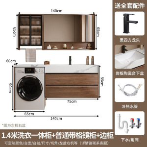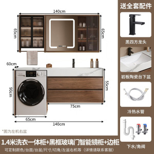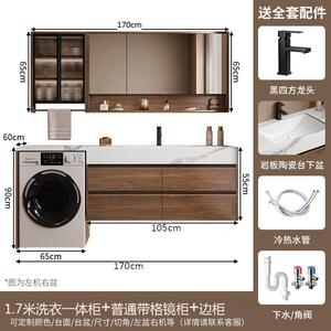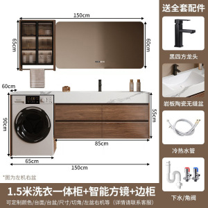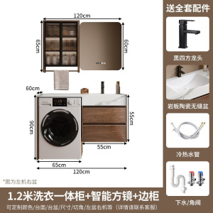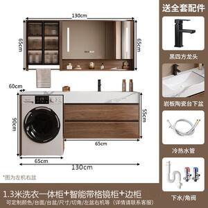 阳台洗衣机柜岩板无缝陶瓷盆组合卫生间洗脸池收纳智能实木浴室柜