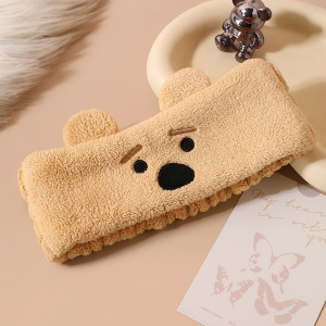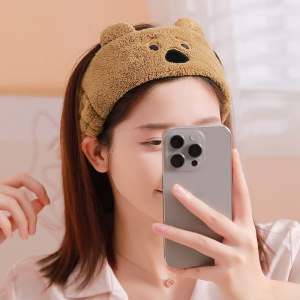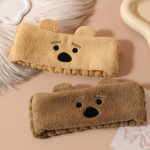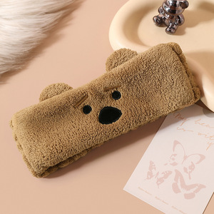 卡通小熊耳朵束发带洗脸头带女生卸妆发套珊瑚绒月子头巾加宽发饰