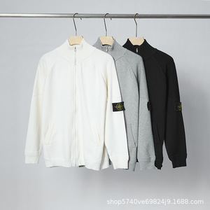 跨境stone石头岛拉链开胸机能立领针织衫罗盘袖标北极绒毛衣外套
