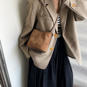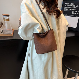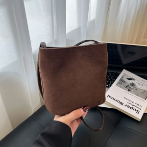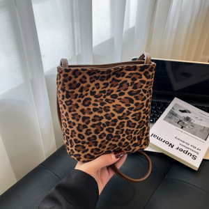 韩国小众ins麂皮绒复古豹纹水桶包2025秋新款极简美拉德斜挎小包