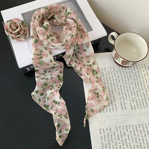 碎花系脖丝巾女2025新款高级感颈饰护颈装饰法式复古领巾飘带批发