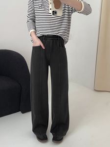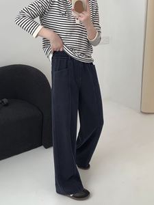 2025春秋冬季新款复古直筒牛仔裤女高腰显瘦宽松小个子窄版阔腿裤