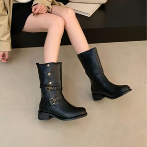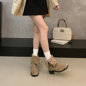 粗跟短靴女百搭复古切尔西靴2025年新款网红两穿中跟马丁靴英伦风