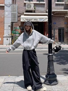 灰色美式复古短款卫衣外套女连帽运动上衣小个子休闲秋季2025新款