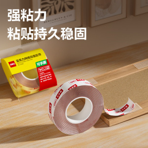 得力亚克力网格双面胶带透明高粘度固定贴墙面胶带强力胶带批发