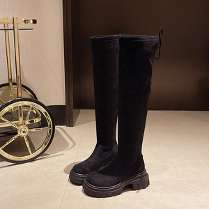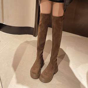 过膝长筒靴女2025秋冬季新款厚底粗跟高筒骑士靴气质显瘦弹力长靴