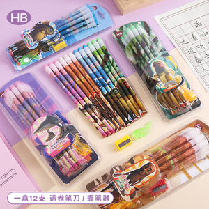 外国ai山海经系列HB铅笔12支装带橡皮擦学生铅笔木棍人融合怪铅笔