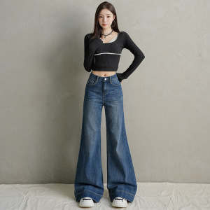秋季新款不贴腿宽松微喇叭牛仔裤女弹力复古显瘦高品质马蹄裤百搭
