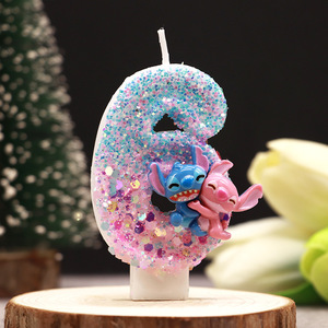史迪仔合体卡通双色数字蜡烛生日派对节日装饰可爱蛋糕蜡烛批发