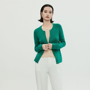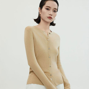 重磅金线18针全羊毛圆领针织开衫日韩休闲风百搭减龄款长袖外套女