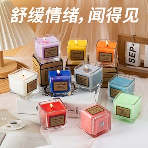 跨境热销彩色香薰蜡烛礼盒装居家卧室持久散香清新空气蜡烛香薰