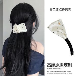 韩系缎面波点蝴蝶结香蕉夹马尾夹竖夹女夏天发量大抓夹鲨鱼夹2025