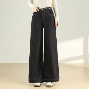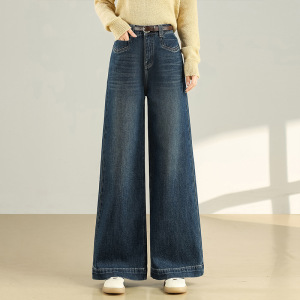长款牛仔筒喇裤2025年秋季新款垂感修身微喇裤时尚高腰阔腿裤女