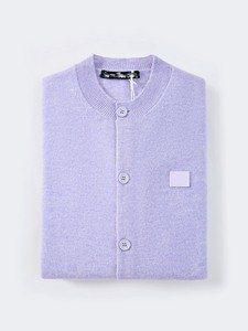 明星同款AC笑脸刺绣纯色100%羊毛女士圆领针织开衫长袖外套毛衣
