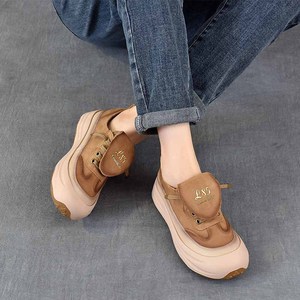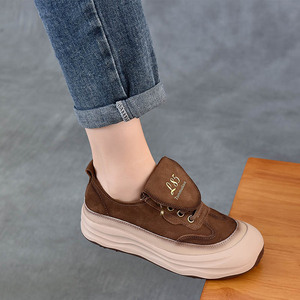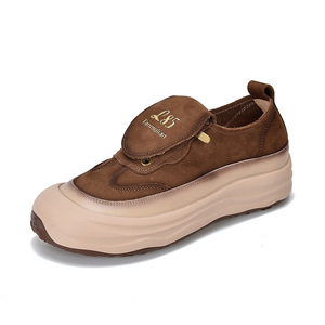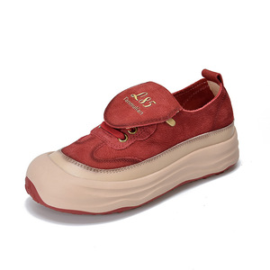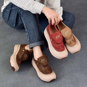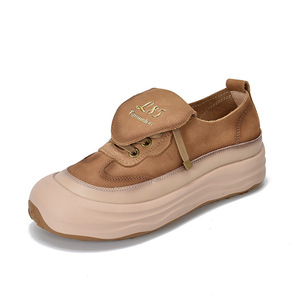 以一春秋新款头层牛皮软底复古休闲舒适软底丑萌单鞋拼色平底板鞋
