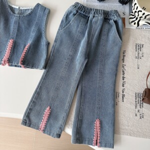 2025秋季新款女童时髦宝宝洋气衬衫牛仔马甲阔腿裤三件套67681