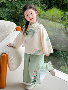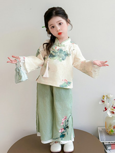 汉服女童秋季2025新款儿童国风新中式套装长袖古风女孩两件套批发