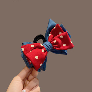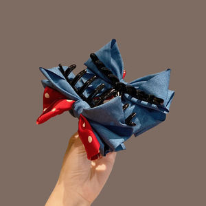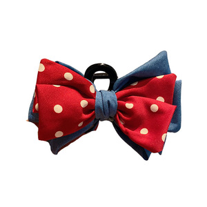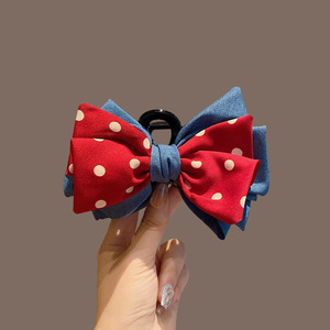 童话感红蓝撞色抓夹牛仔蓝红拼色波点双面发饰甜美小众学院风发饰