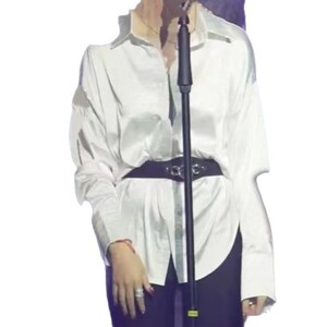 王金金同款衣服别致绝美小衫白色醋酸衬衫女夏季雪纺防晒缎面上衣