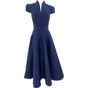 新品法式赫本风气质赫本风V领收腰显瘦修身大下摆礼服纯色连衣裙