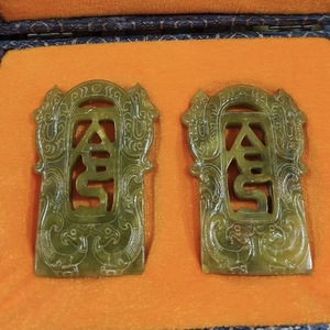 直播供货仿古做旧工艺品岫玉做旧 古风配饰 福字吉祥套盒玉牌批发