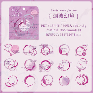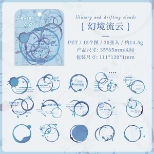 ZABC贴纸包烟雨流光系列水墨晕染边框主题手帐素材贴30枚入6款