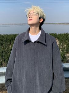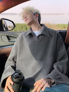 麦穗纹Polo领卫衣男春秋季2025新款美式潮牌宽松重磅长袖T恤外套