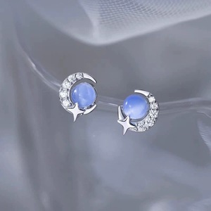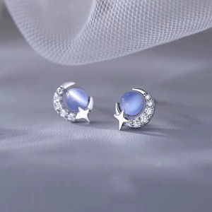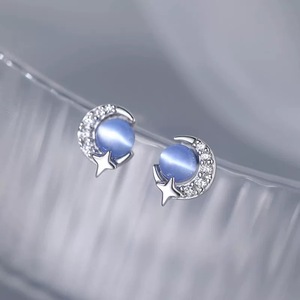 S925纯银猫眼石月亮耳钉女小众设计耳环轻奢耳饰送女友ins风耳钉