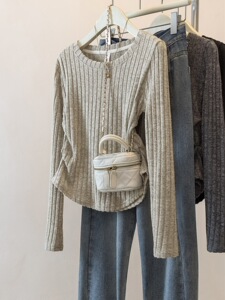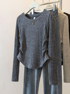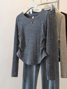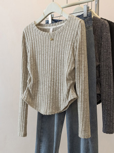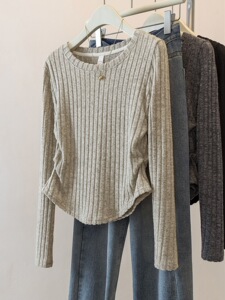 上身超惊艳 !韩系简约百搭圆领长袖T恤女新款宽松显瘦百搭上衣新