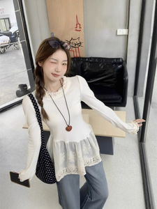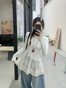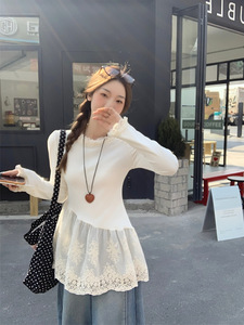 2025年秋季大码胖MM法式复古小众设计感拼接蕾丝花边打底上衣t恤