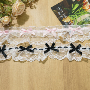 网纱双层立体蝴蝶结花边洛丽塔裙子衣领袖口百搭装饰蕾丝花边辅料