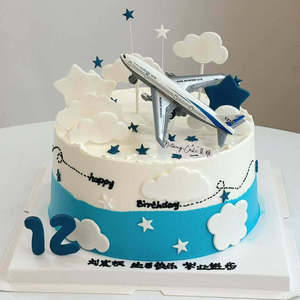 创意飞机模型机票小男孩生日蛋糕装饰云朵星星插牌毕业季烘焙摆件