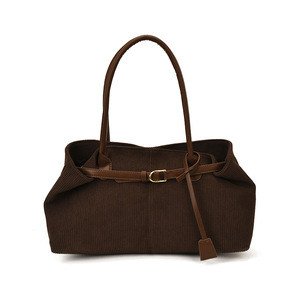 休闲大容量帆布包包女2025新款通勤百搭单肩腋下包撞色手提托特包