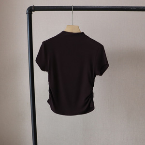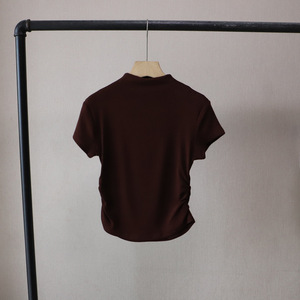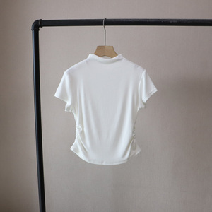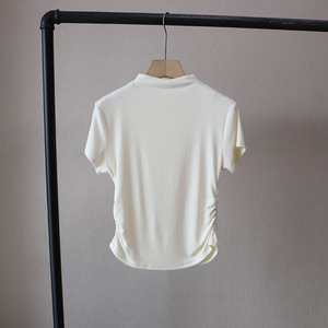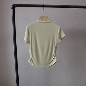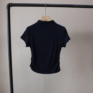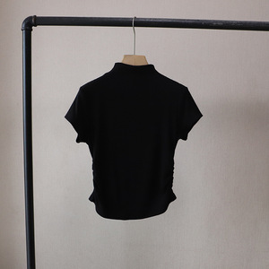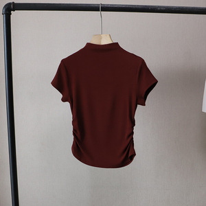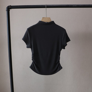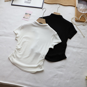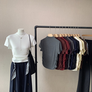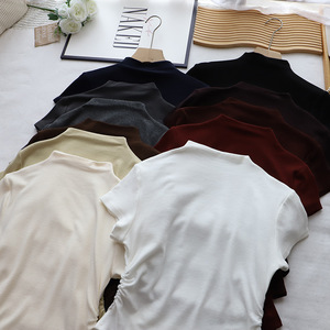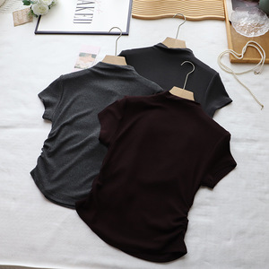 [比正]2025秋季新款韩版女装半高领收腰显瘦百搭短袖打底T恤4827