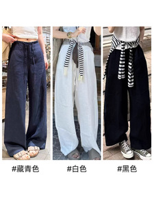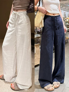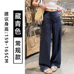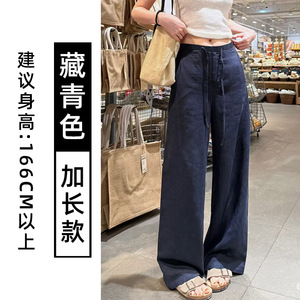 藏青色棉麻阔腿裤女夏季薄款2025新款高腰冰丝宽松休闲慵懒直筒裤