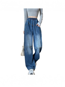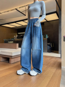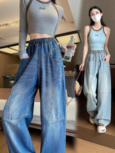 时尚阔腿牛仔裤女2025年春秋季新款阔腿高腰宽松显瘦弯刀直筒裤子