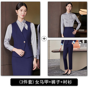 【女】蓝色马甲+裤子+6726银灰衬衫