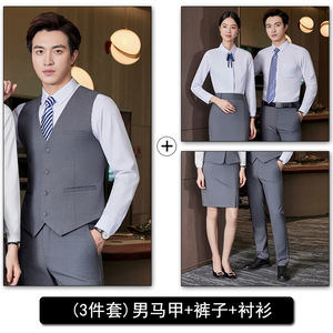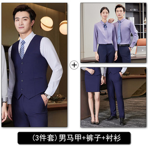 高级感职业马甲套装男女同款酒店前台餐厅收银桌台球服务员工作服