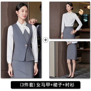 【女】灰色马甲+裙子+6726白色衬衫